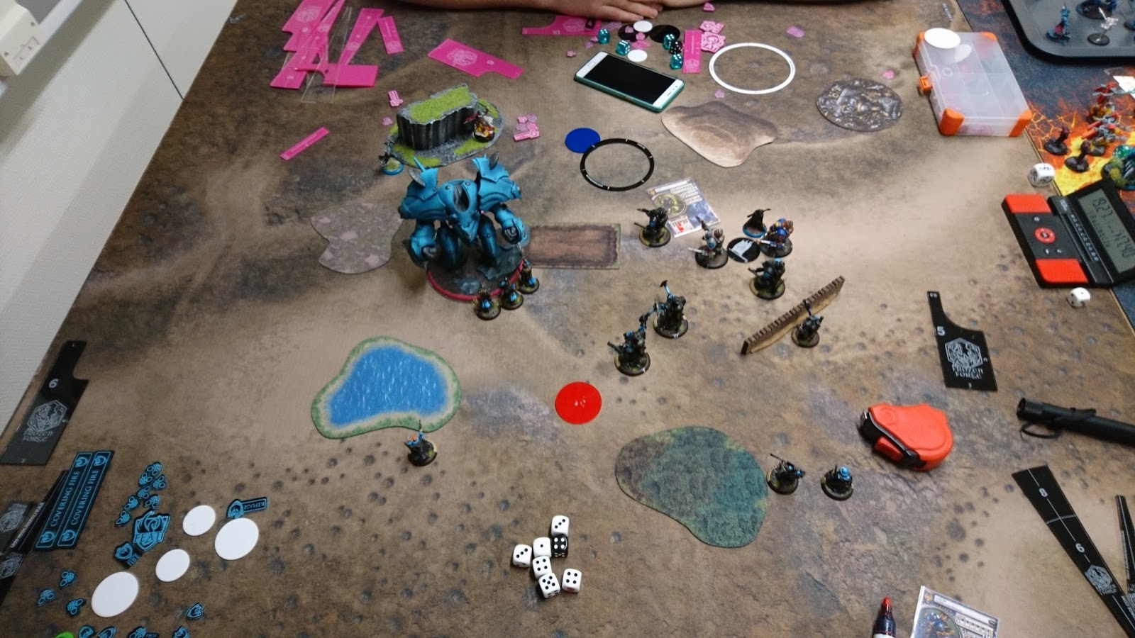 Ok, Rahn in a Trench but he has but a single focus. If I can light up the Sphinx I can see him and reach him with all Hunters and Sloan. I figure this is a very good shot. Ideally I would have wanted to look for attrition options here, but. This is the first game with a new list. I need to find out how it plays. Besides I have time for one more game if the first game is over quickly so I go for it. Long story short I get all 13 shots but only 2 of them hit and Rahn survives on a handful of boxes. I concede the game as Sloan is in the open on 0 focus. We re-rack and this time Retribution goes first.